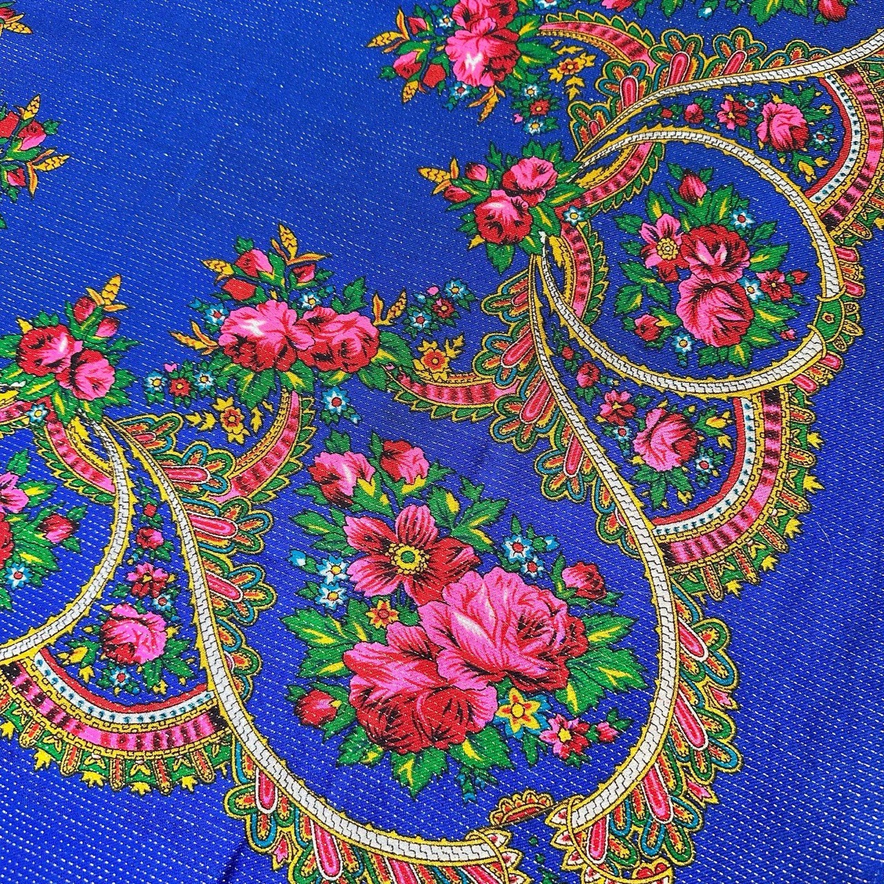 Bufanda cuadrada azul con flores