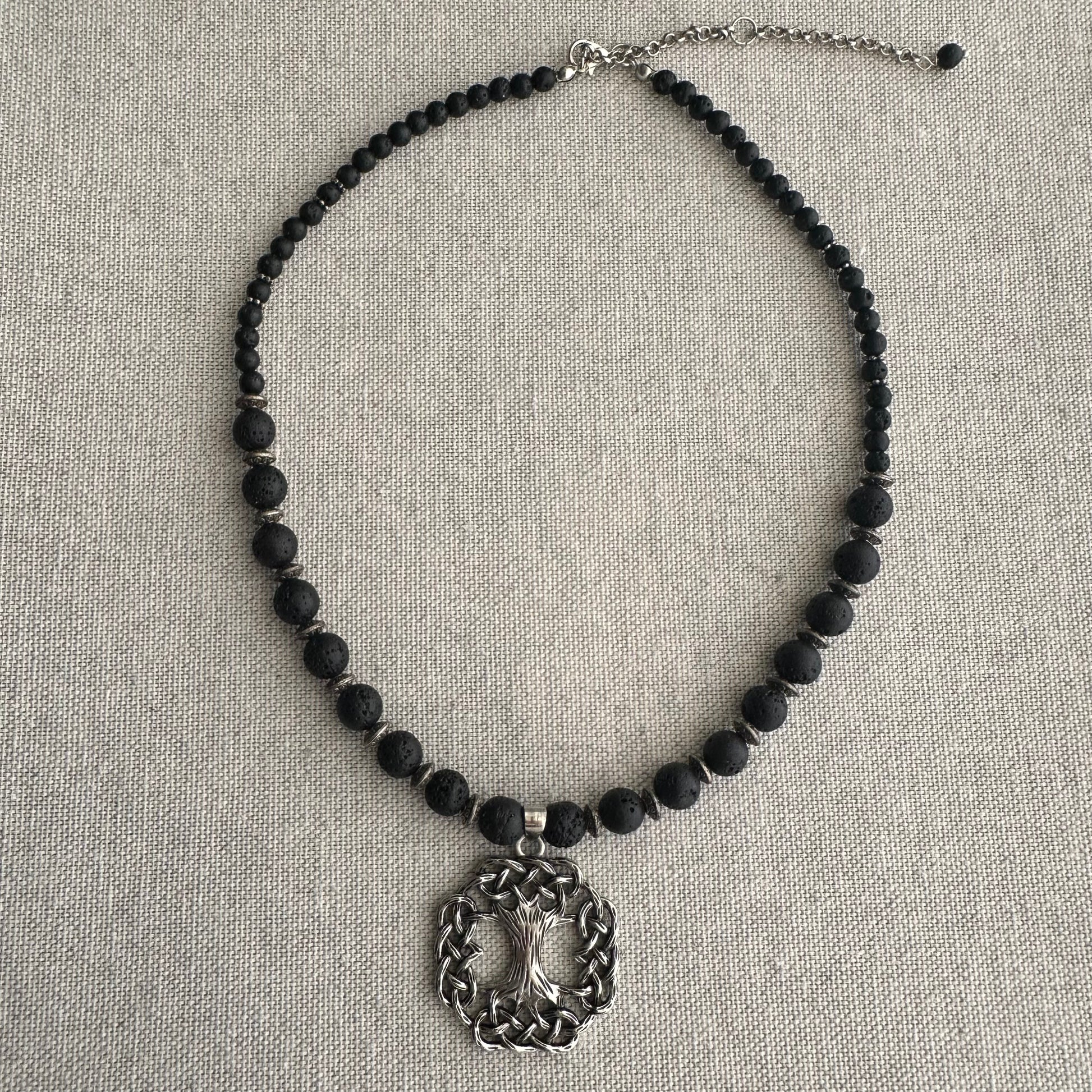 Collar de piedra volcanica con Zgarda "Arbol de la vida"