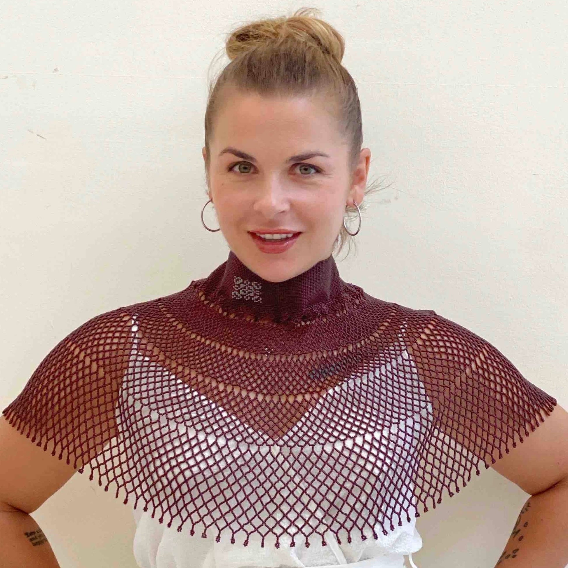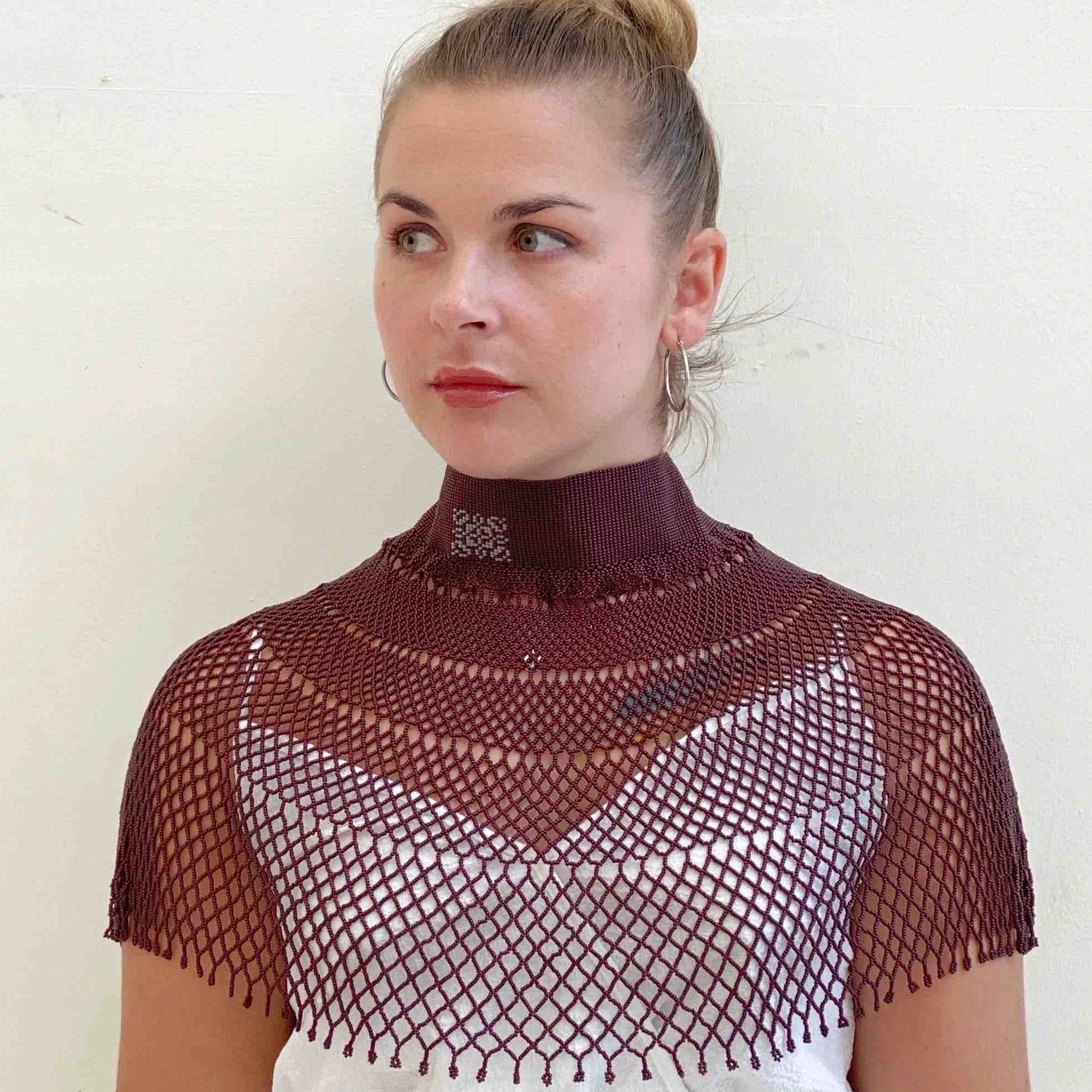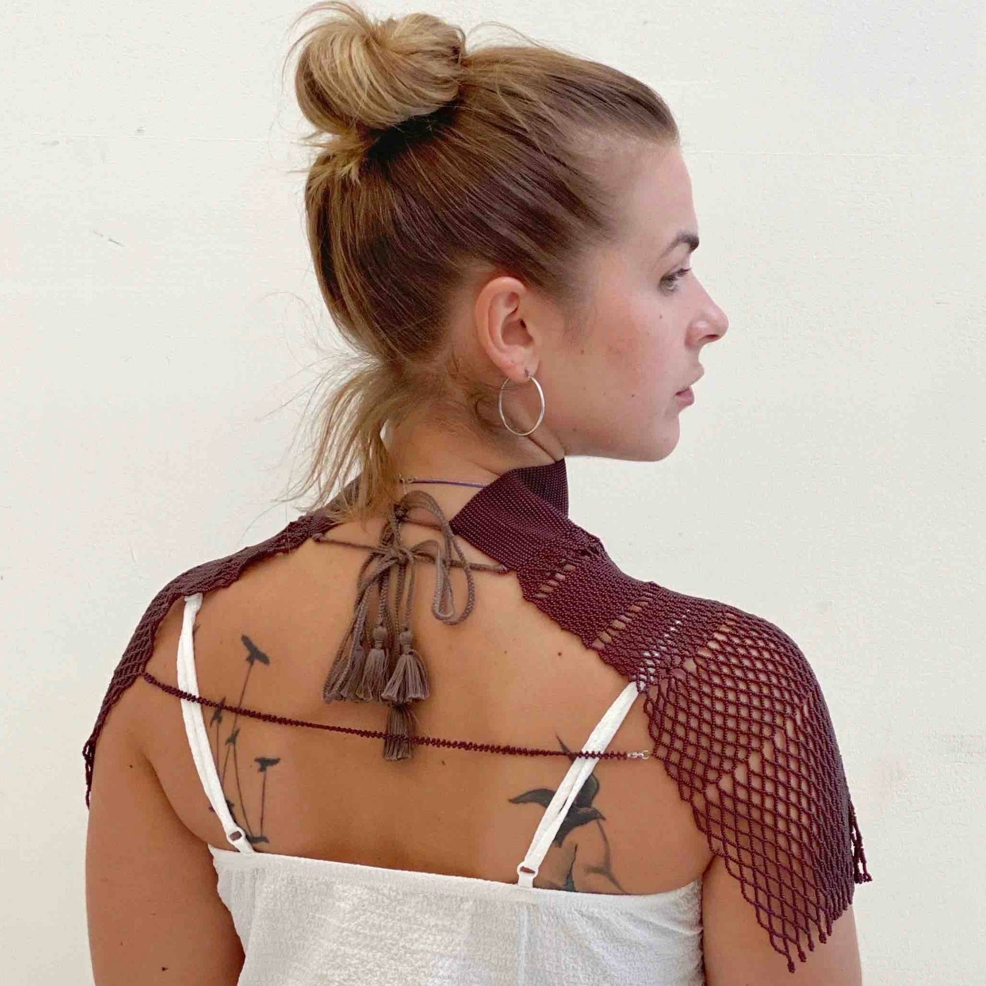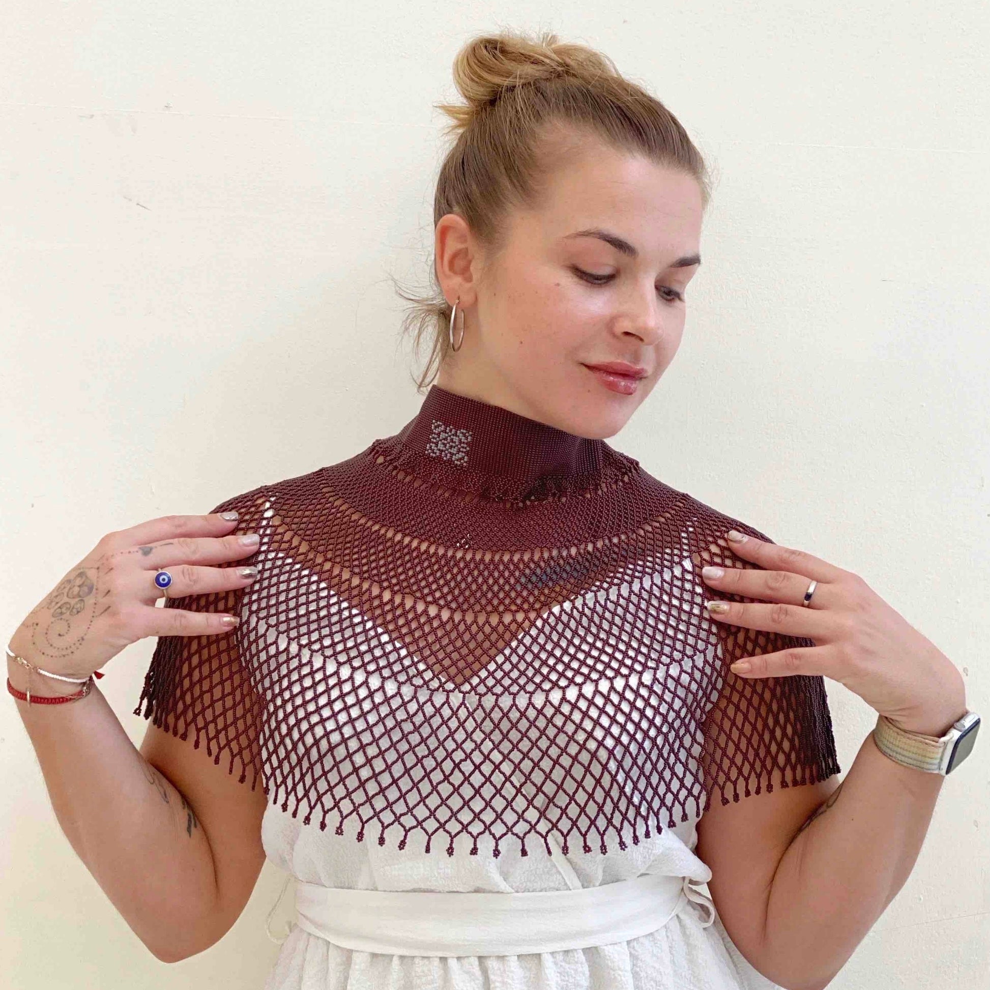 Joya ancha artesanal con cristales naturales y chaquira japonesa, inspirada en la tradición ucraniana de la sylianka