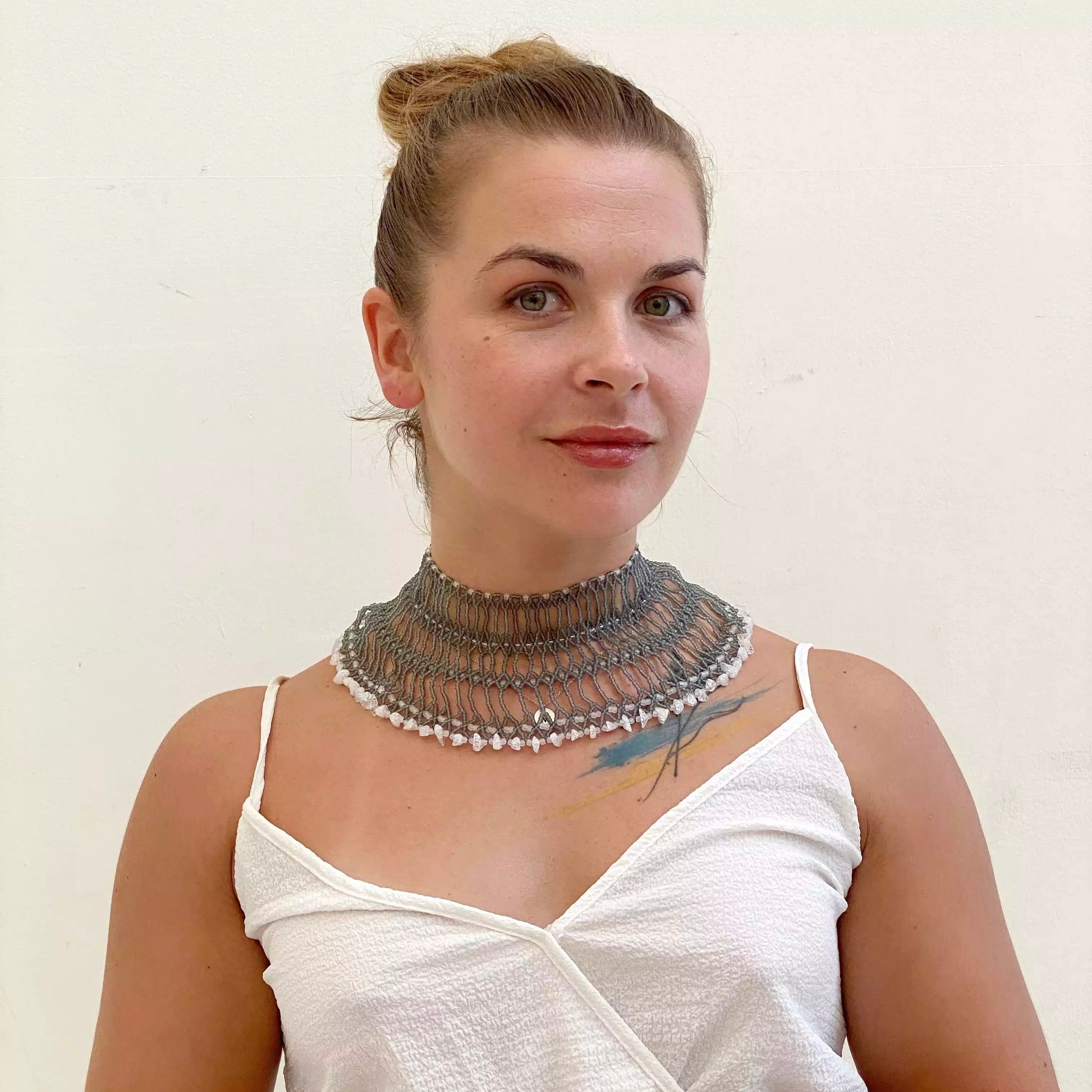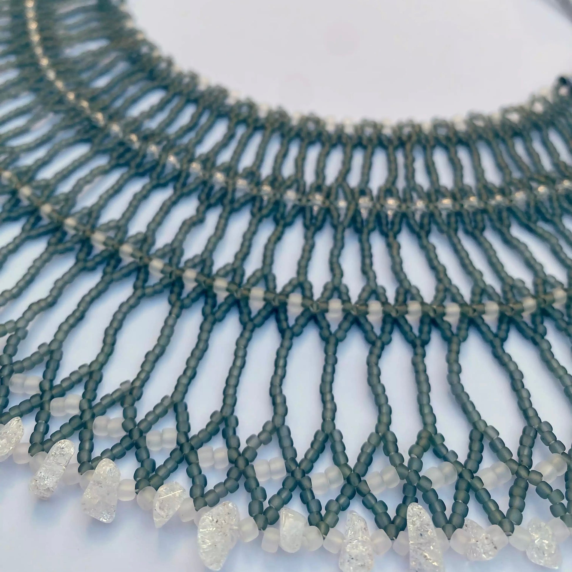 Joya ancha artesanal con cristales naturales y chaquira japonesa, inspirada en la tradición ucraniana de la sylianka