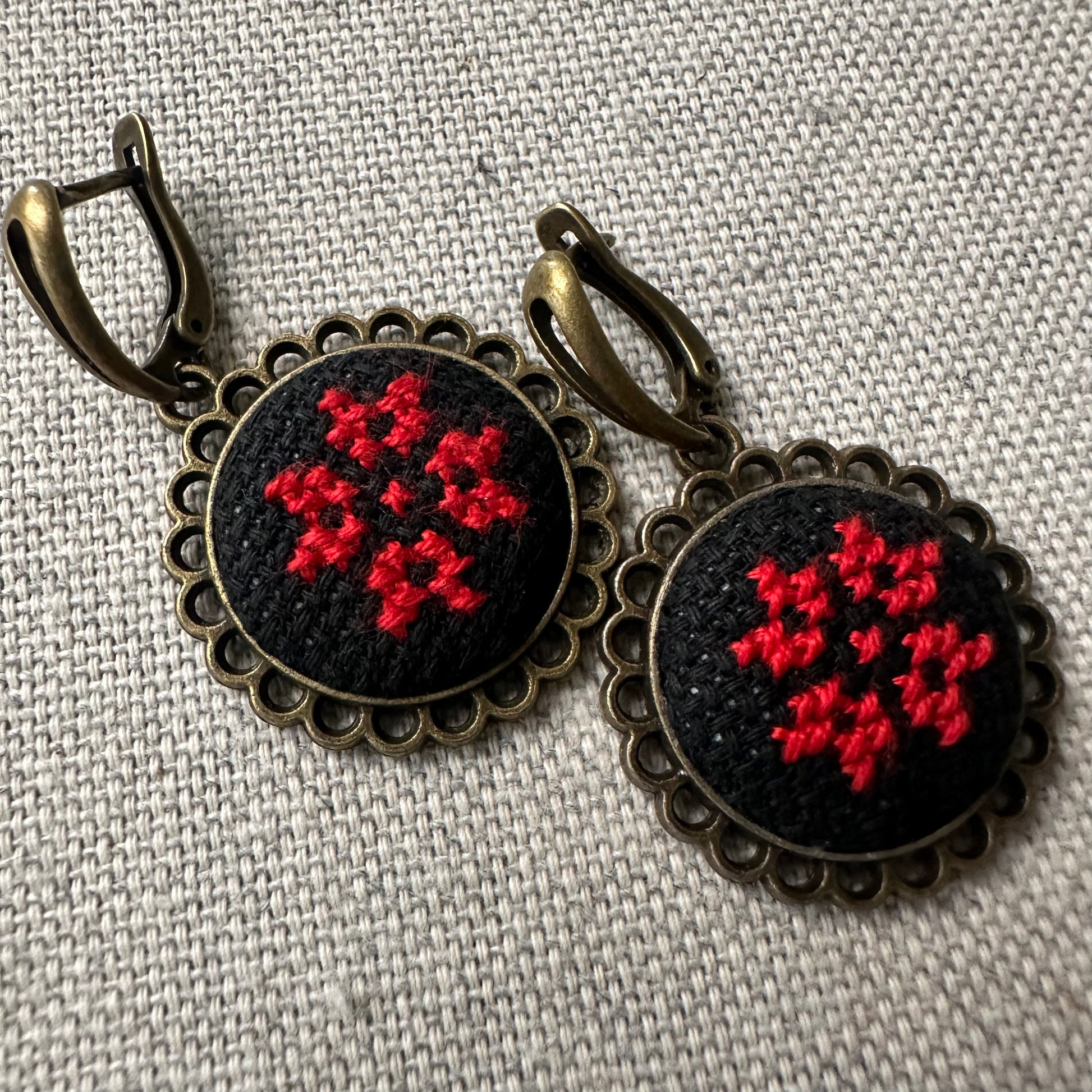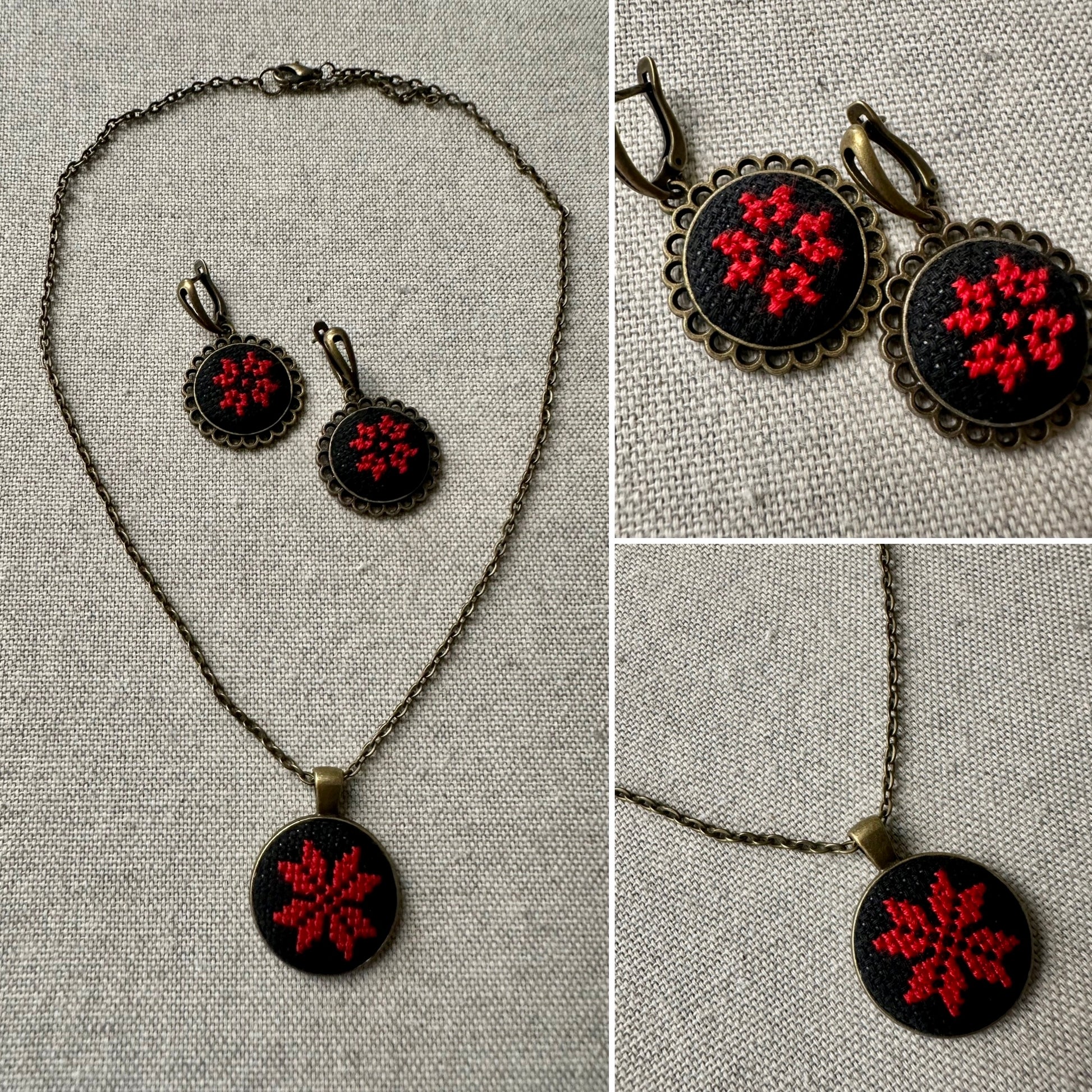 Juego de Collar y Aretes | Bordado | Rojo & Negro
