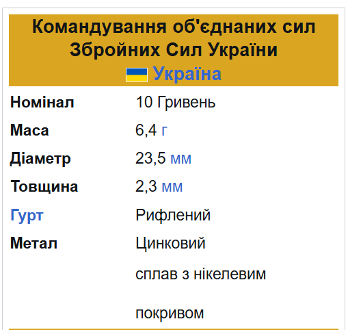 "Juntos Venceremos": moneda circulante conmemorativa dedicada al Comando Conjunto de las Fuerzas Armadas de Ucrania. La moneda se puso en circulación el 6 de diciembre de 2023.