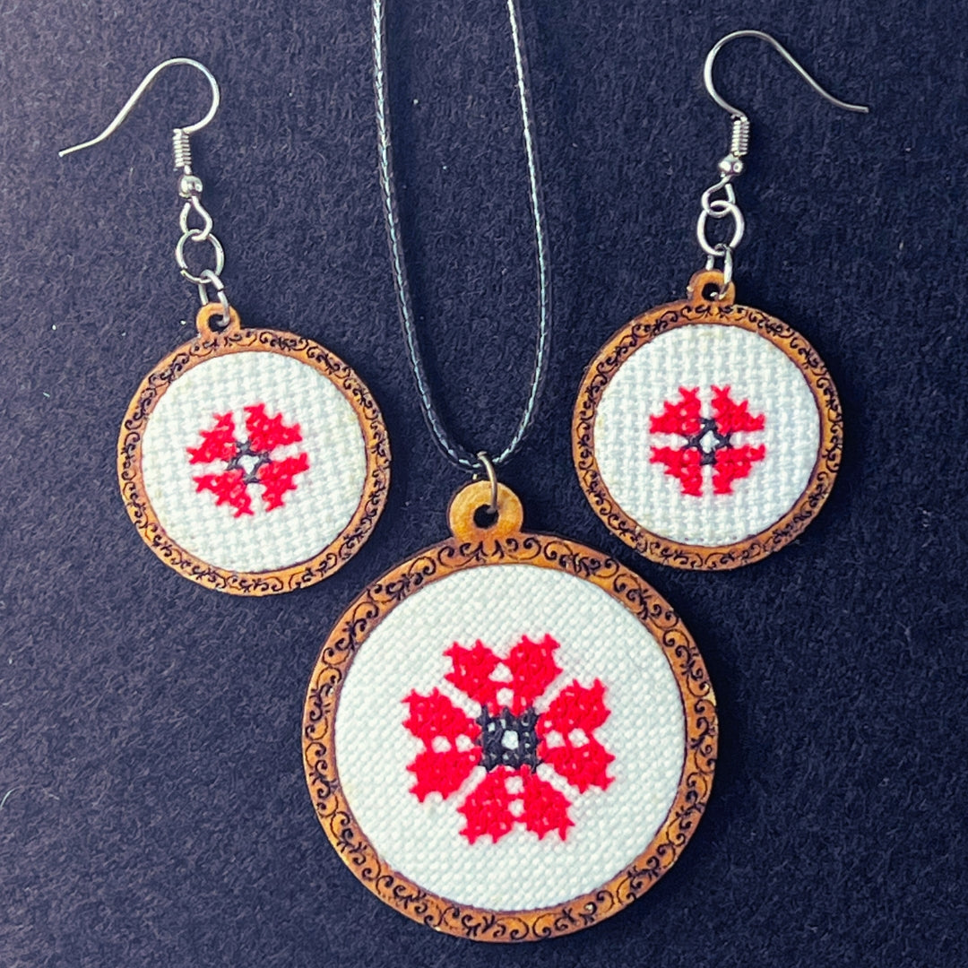 UA Market® Juego de Collar y Pendientes | Bordado | Rojo & Negro